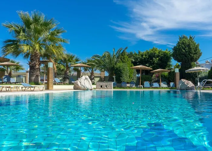 Stamos All Inclusive ファリラキホテルには128室の客室があり、ウォーターパークから3.2キロメートル離れた所の場所にあります。 駐車場もあります。
